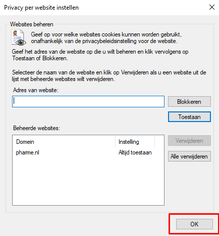 Vanwege veiligheidsoverwegingen is het niet mogelijk om in te loggen op pharme.nl wanneer uw internet browser het gebruik van cookies niet toestaat. Indien uw browser geen cookies accepteert, kunt u een uitzondering maken voor onze website door onderstaande stappen te volgen. Let op: deze stappen gelden voor de browser 'Internet Explorer'. Maakt u gebruik van een andere browser of komt u er niet uit? Neem dan contact op met uw systeembeheerder.